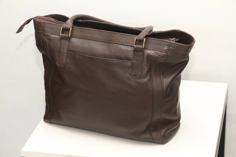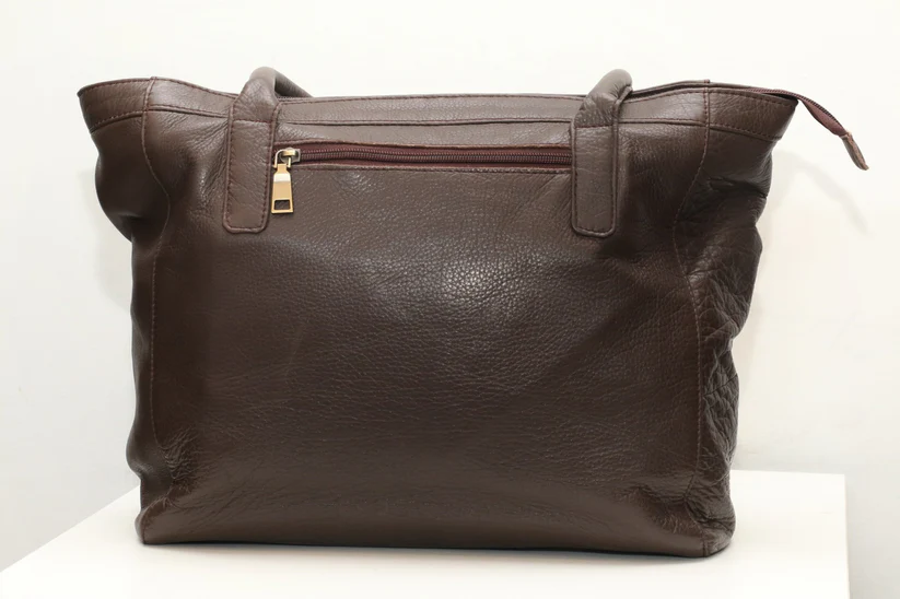 This Women Leather Bag, crafted from high-quality cow leather, offers durability and a refined look. Featuring a rich brown color, it measures 34 cm in length, 29 cm in height, and has handles extending 53 cm for comfortable carrying. Its premium leather ensures long-lasting use while maintaining an elegant style suitable for everyday wear or professional settings.