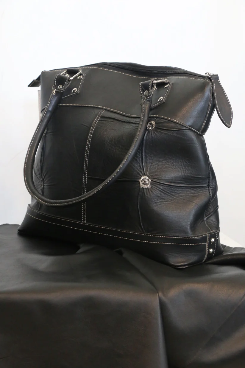 Crafted from premium black cow leather, the Jet Luxe Tote-Hand Bag offers both elegance and durability. Measuring 33 cm in length and 26 cm in height, it features two sturdy handles designed for comfortable carry. Inside, two side pockets and a central zipper compartment provide organized storage, making it ideal for daily use or professional settings. This tote combines sophisticated style with practical functionality.