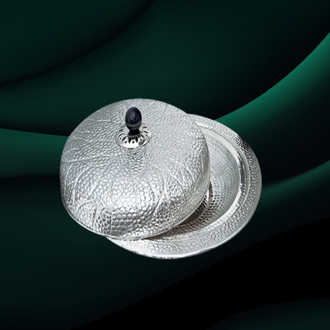 The lid is crowned with a polished Blue Lapis Lazuli gemstone, serving as a striking centerpiece that enhances the dish’s sophisticated appeal. Versatile and luxurious, it is ideal for both display and functional use, making it an exceptional gift for weddings, anniversaries, or any special occasion.