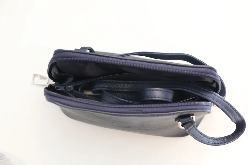 Crafted from premium cow leather, the Midnight Charm Zip Crossbody in navy blue combines durability with timeless style. Measuring 17 cm in length and height, its compact design is ideal for carrying essentials. Adjustable handles offer versatile comfort, while the rich leather finish ensures long-lasting quality and a sophisticated look. Perfect for daily use or special occasions, this bag elevates your wardrobe with expert craftsmanship and functional elegance.
