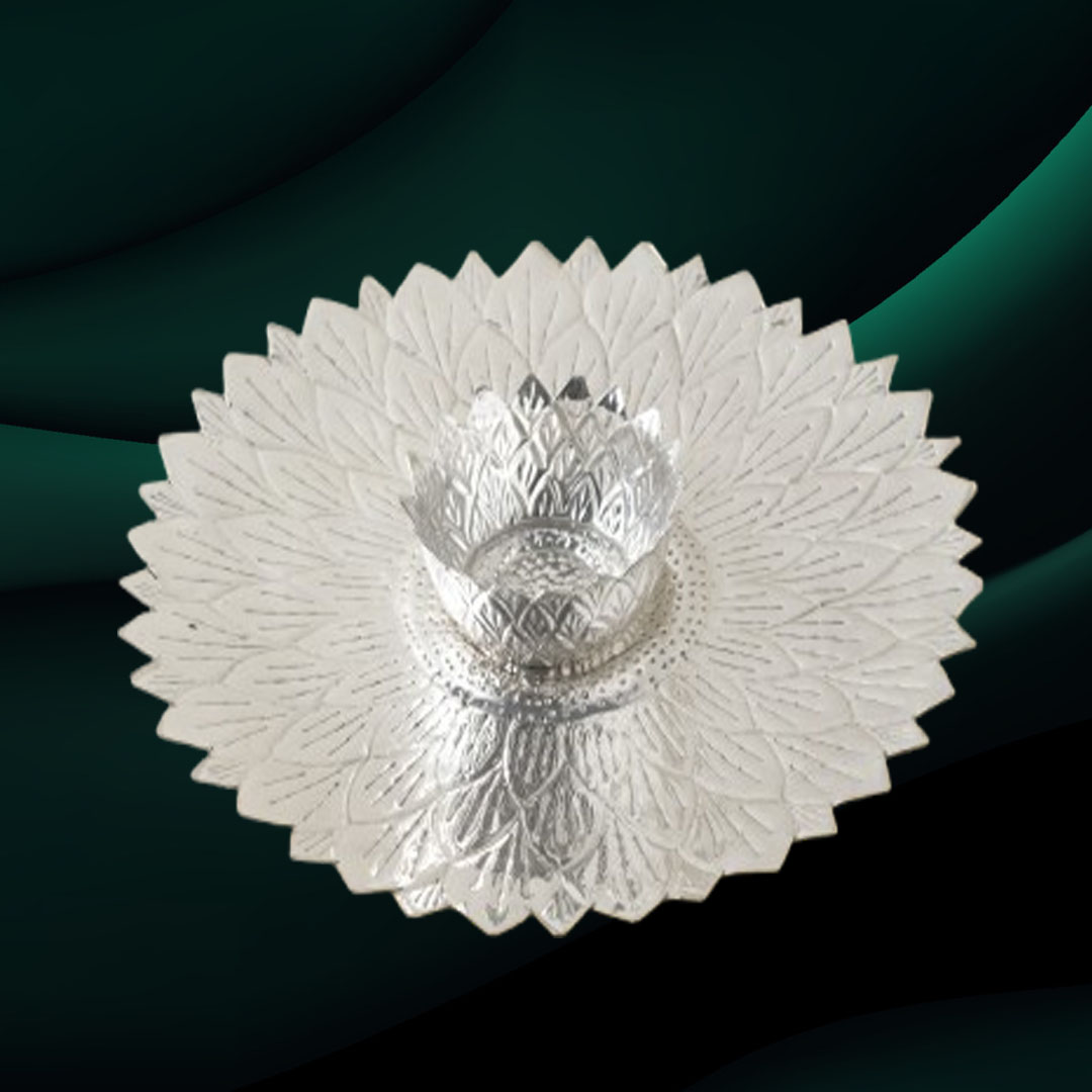 Rooted in generations of silversmithing mastery, the Roben Dip Dish by TazeenoAraish transforms everyday serveware into a refined work of art. Expertly handcrafted by Pakistani artisans, this exquisite piece is designed as a fully bloomed flower, with delicately spread petals rendered in intricate detail using traditional hand-hammering techniques.