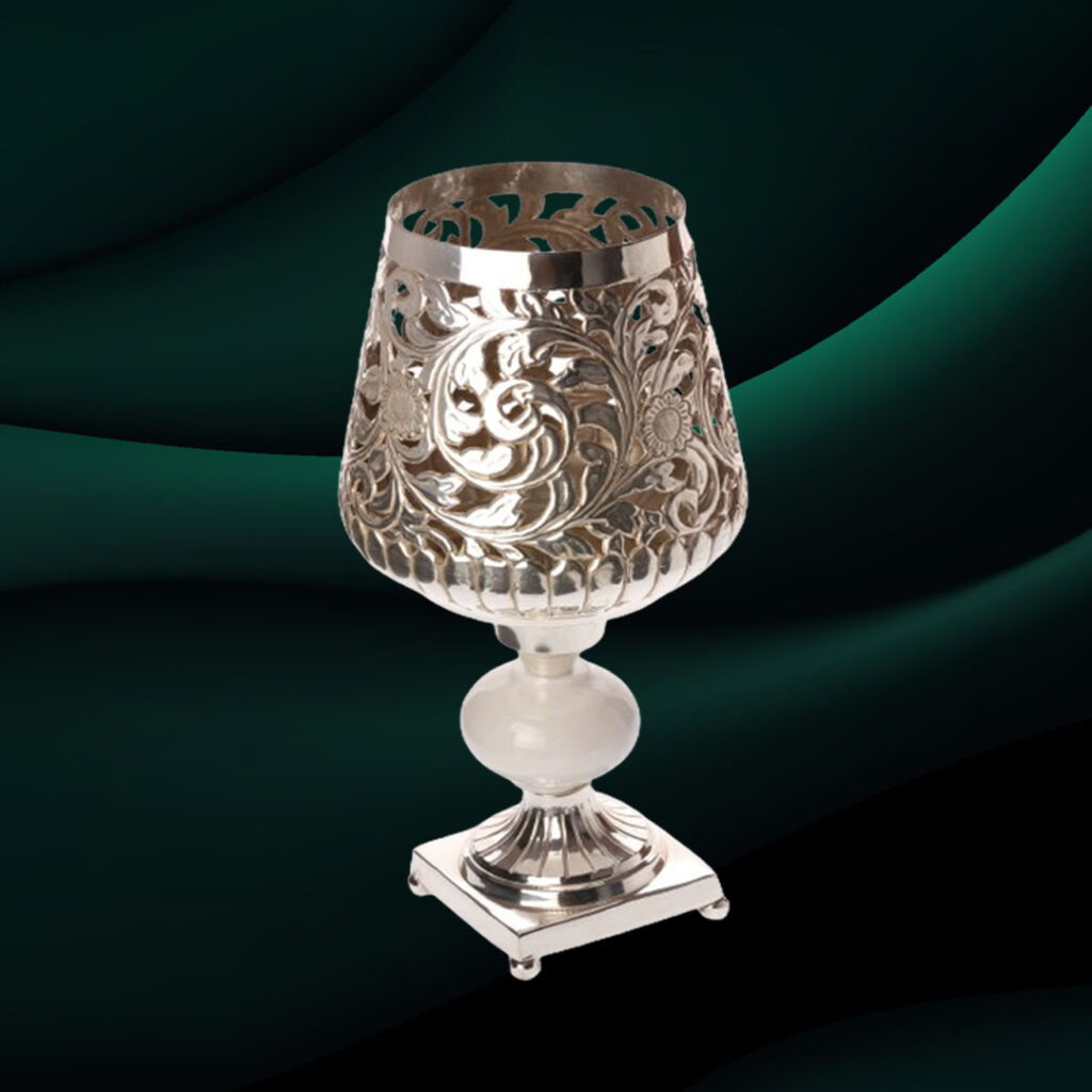 Handcrafted with precision, the box showcases a meticulously hammered silver surface, enhanced by intricate etching that highlights the artisans’ exceptional attention to detail. At its center, a Green Onyx semi-precious gemstone adds a refined and distinguished accent, elevating the piece’s elegance. With its modern design and enduring appeal, this exquisite creation is an ideal gift for weddings, Mother’s Day, or as an exclusive corporate presentation piece.